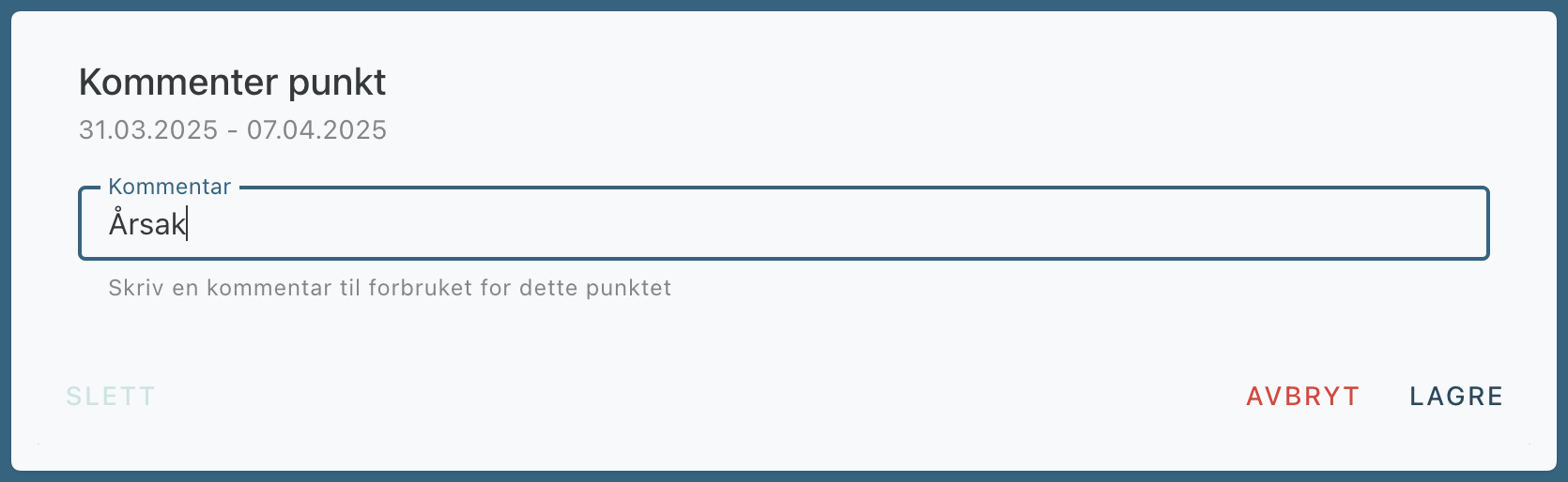 - Høyere forbruk kan oppstå ved aktiviteter som er uvanlige for bygget, som større arrangementer eller annen ekstraordinær bruk av fasilitetene.