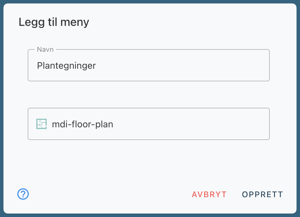 3. Fyll inn et navn til menyen, og velg eventuelt et ikon for å opprette menyen