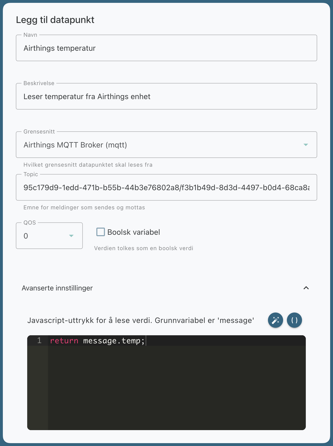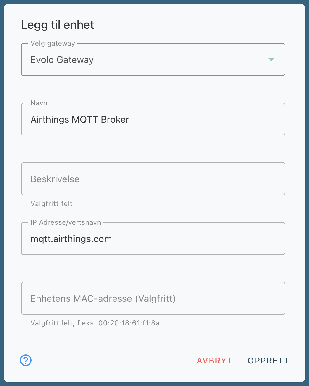 For å lese data fra dine Airthings-enheter, kobler Evolo seg til deres MQTT-broker for å hente verdier i sanntid.