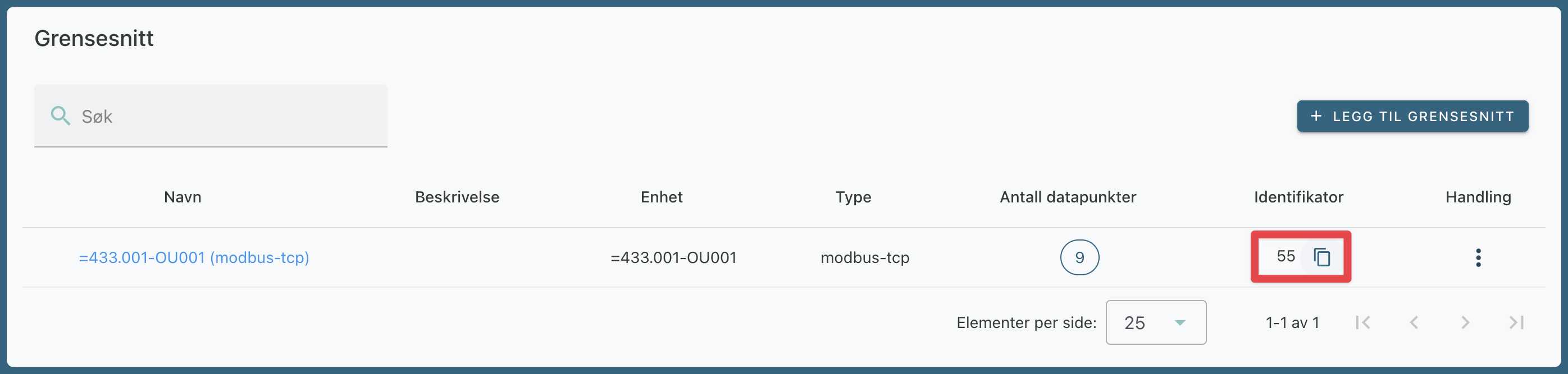 - Finn kolonnen Identifikator som viser de ulike grensesnittene.