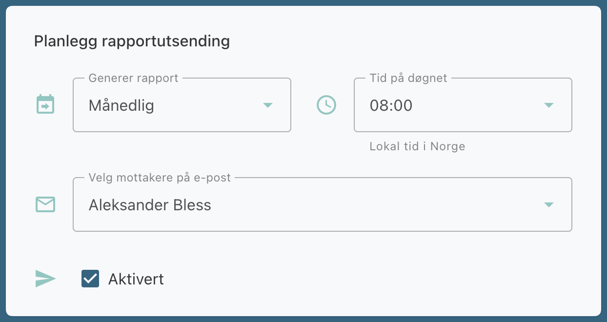 Angi hvor ofte rapporten skal genereres og sendes til de valgte mottakerne.