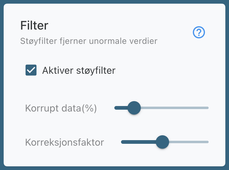 Du kan sette hvor stor andel av dataene man antar er korrupt, samt en korreksjonsfaktor.